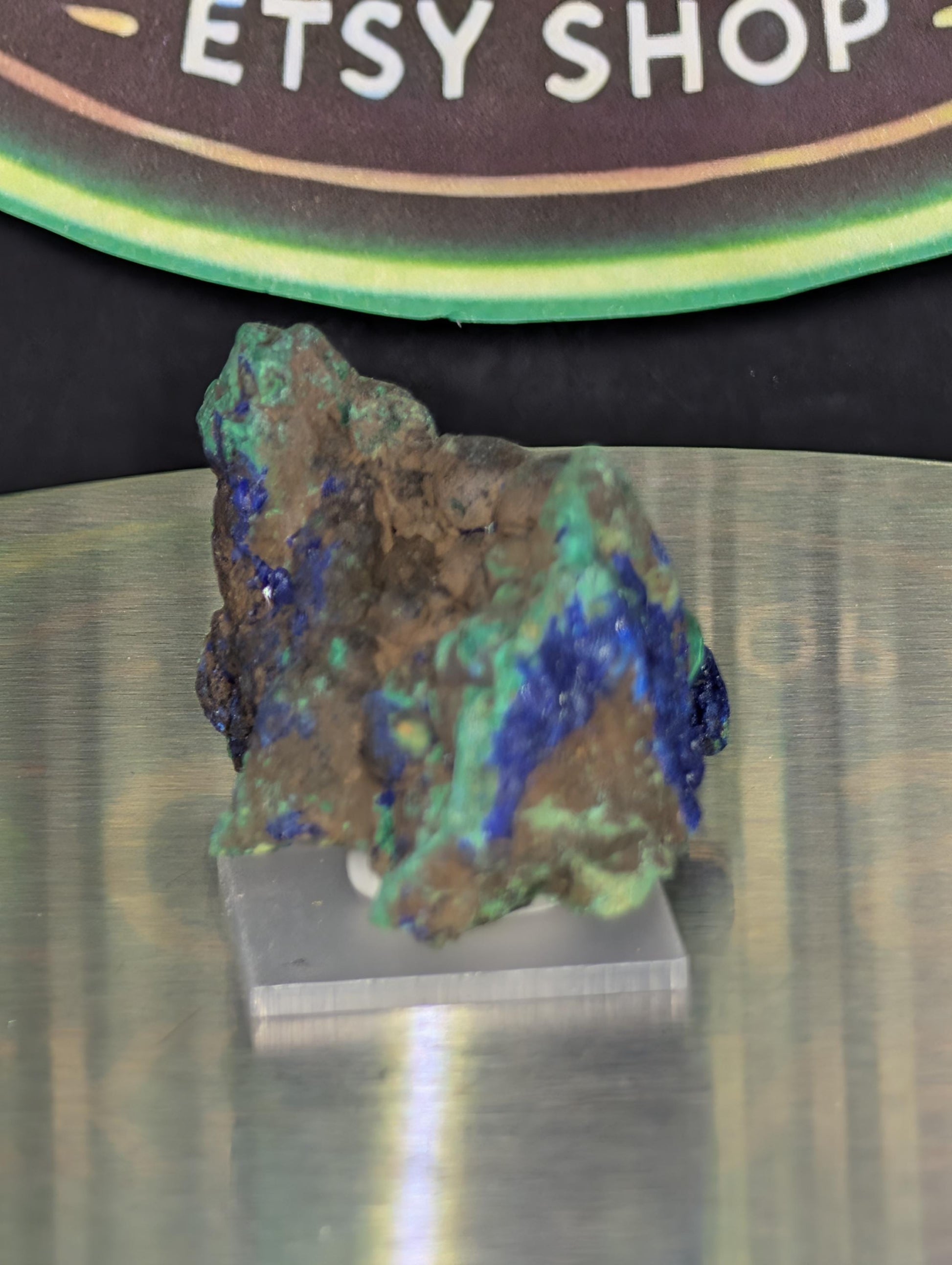 This striking specimen comes from the famous Morenci Mine in Greenlee County, Arizona, a locality celebrated for producing some of the world’s most vibrant azurite and malachite combinations. The piece displays rich, deep blue azurite interwoven with lush green malachite, forming stunning natural patterns that make every specimen completely unique.