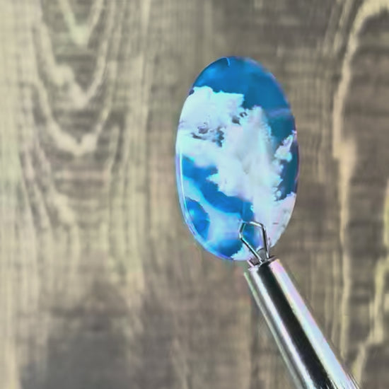 This cabochon features a stunning blue plume pattern, carefully crafted as a doublet to highlight its unique aurora-like hues. It's perfect for a variety of jewelry projects, from statement rings to elegant pendants.