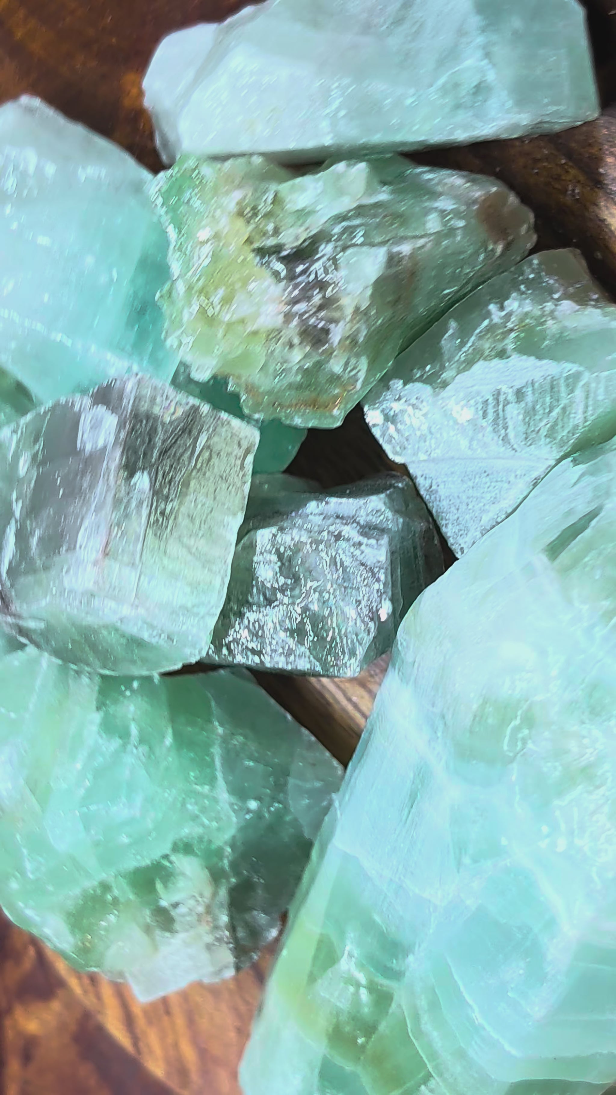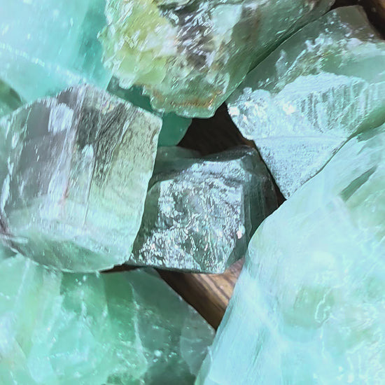 This selection of washed Green Calcite comes from Mexico and features naturally soft green tones that range from pale mint to deeper shades with subtle variations. Each piece has been cleaned and smoothed, making it perfect for display, energy work, or meditation.