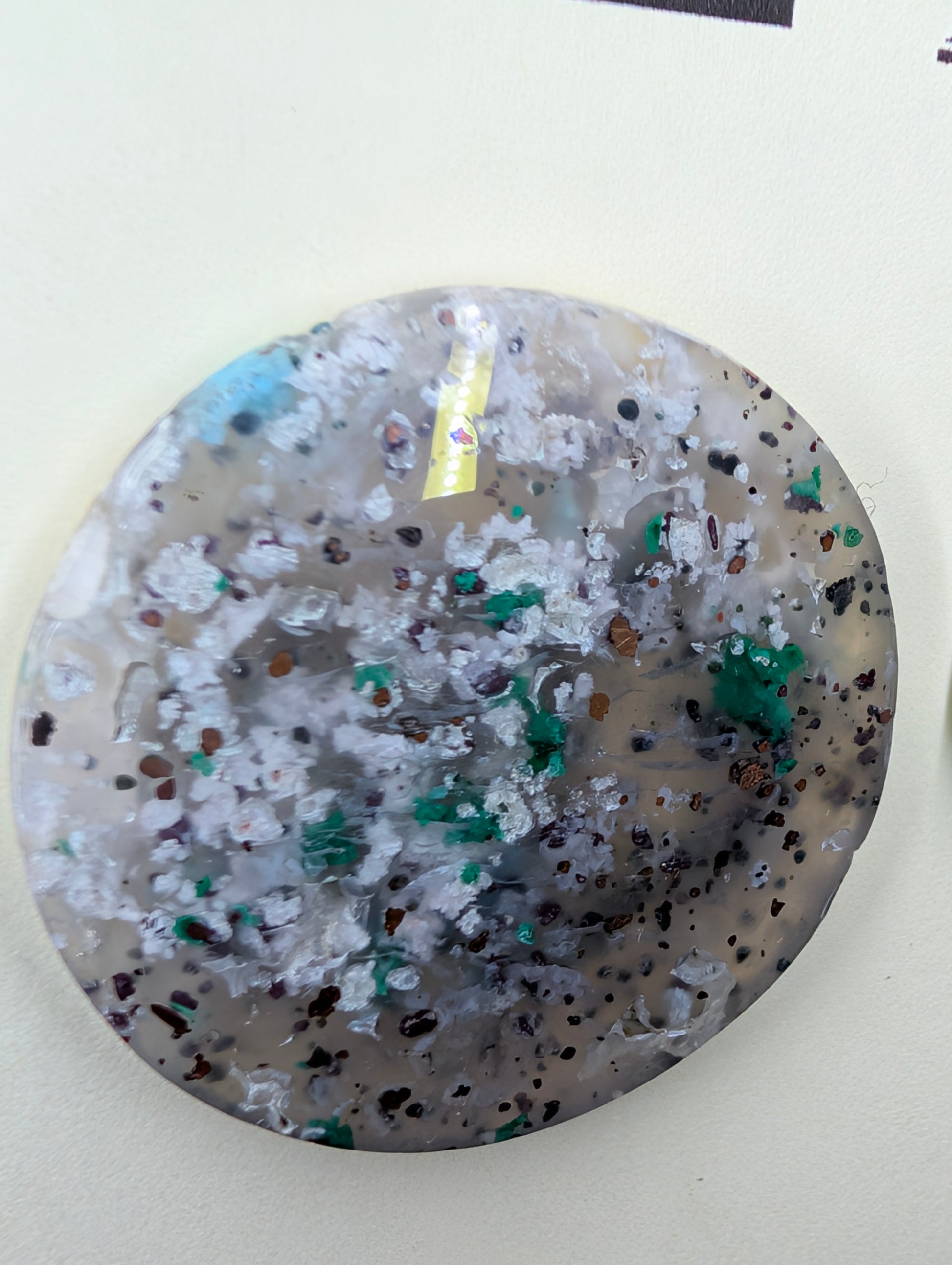 The Alchemist's Perspective The circle shape is not just a form, but a symbol of the infinite potential within the "Ready Set" phase of your journey. It represents the complete integration of your past experiences into your current strength. Chrysocolla provides the calm communication needed to speak your truth, while the grounding elements of Copper and Cuprite provide the raw, vital energy to keep your inner wheel turning toward your mission.