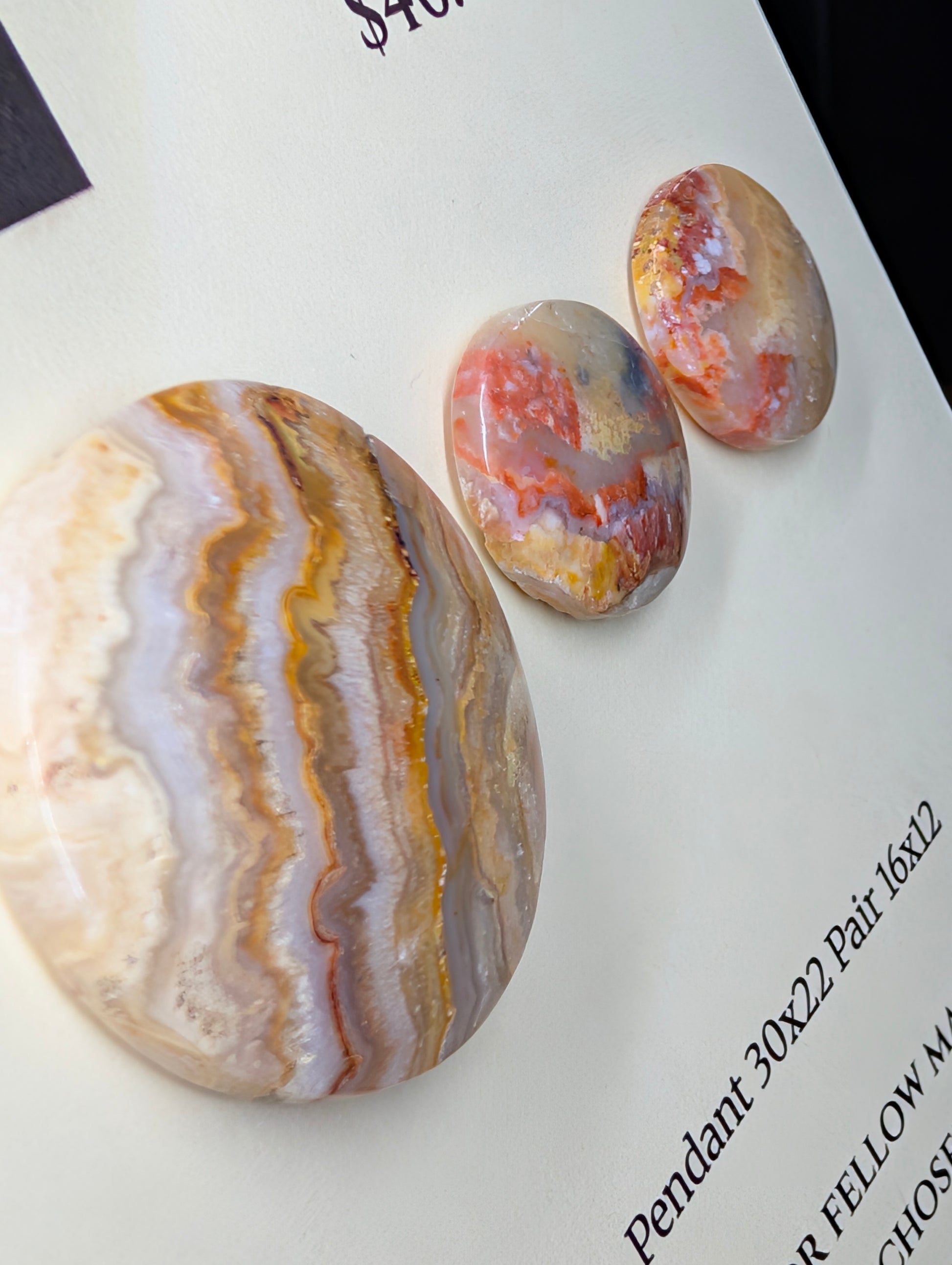This exquisite set features high-quality Lace Agate, precision-cut into classic, elegant circle shapes. Known for it's striking cream bands, each stone is selected for its distinct patterns and superior polish.