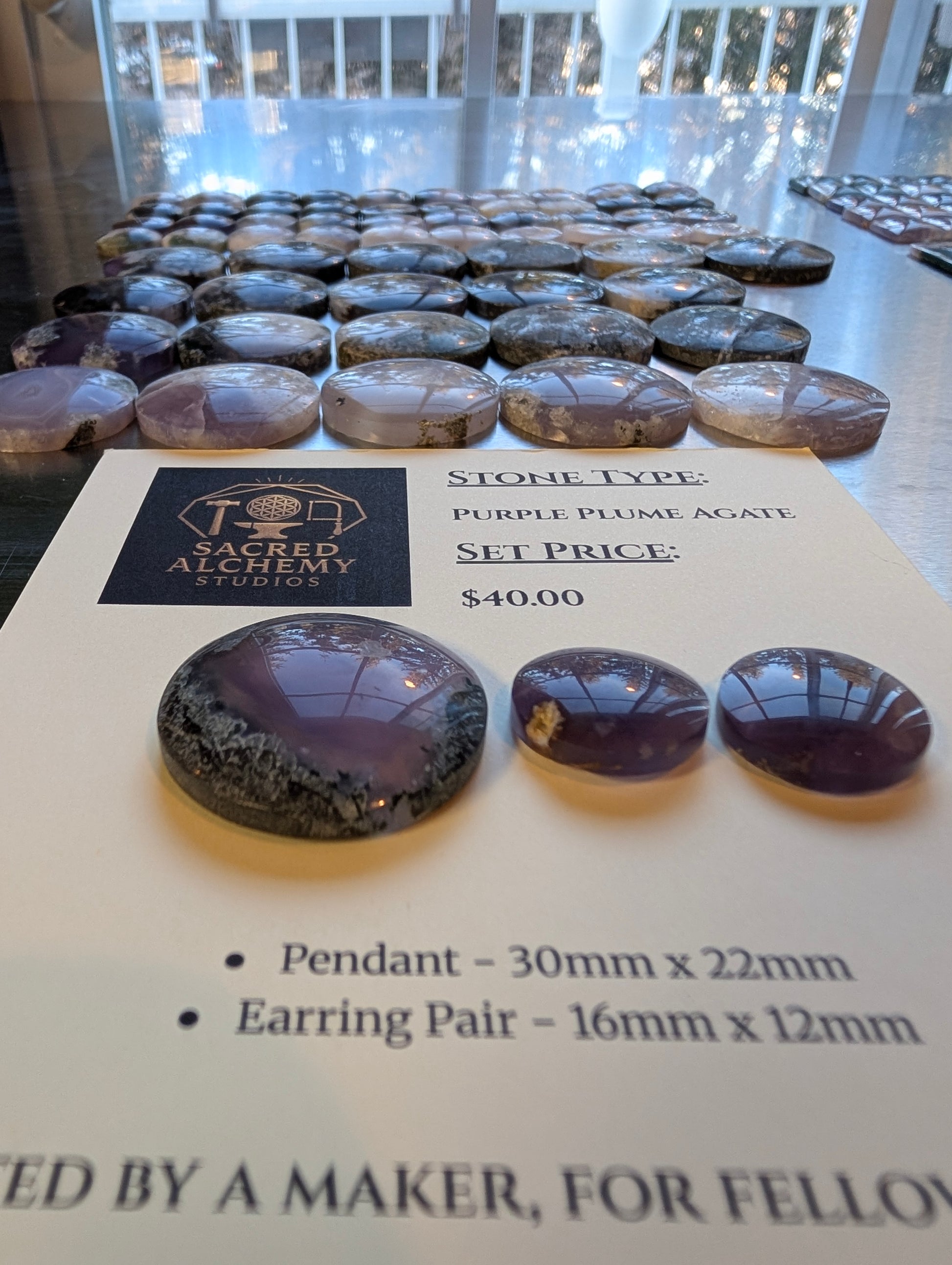 This exquisite matched set features high-quality Purple Moss Agate, precision-cut into classic, elegant oval shapes. Renowned for its ethereal lavender hues and delicate, feathery mineral inclusions, each stone is hand-selected for its intricate "Moss" patterns and superior vitreous polish.