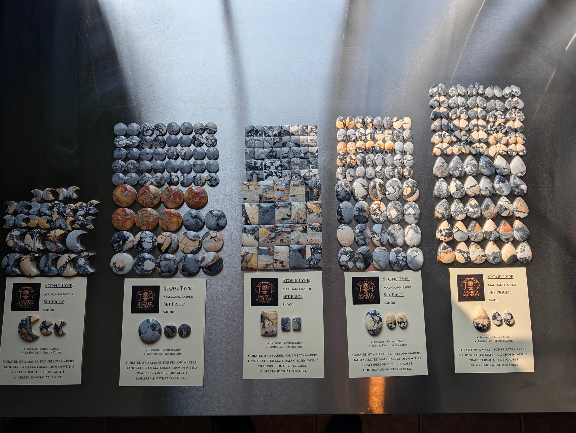 We are delighted to introduce our new Design-Ready Calibrated Sets - Monthly Subscription program, offering our loyal customers exclusive early access to our finest monthly cabochon arrivals. Each month, subscribers will receive a curated box containing three cabochon sets—one from each of the three new stones introduced that month. Each of the three stone sets includes a pendant and earring pair in the same shape and stone, providing you consistent shapes and sizes for your designs.