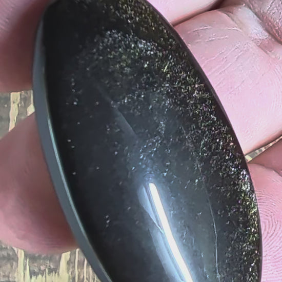 The Specimen Gold sheen obsidian cabochon with a clean black base and a strong gold flash that shows best under direct light. Smooth high polish, crisp dome, clean edges, ready for wire wrapping, bezel setting, or jewelry builds. The gold sheen comes from layered flow textures and micro-bubbles formed as the lava cooled, which creates the metallic look when light hits it. - A bold statement stone for rings and pendants - Wire-wrapping and bezel projects that need a dark base with a gold pop - Gifts for someone who likes black and gold jewelry - Photo and video content, the flash reads well in sunlight and moving light