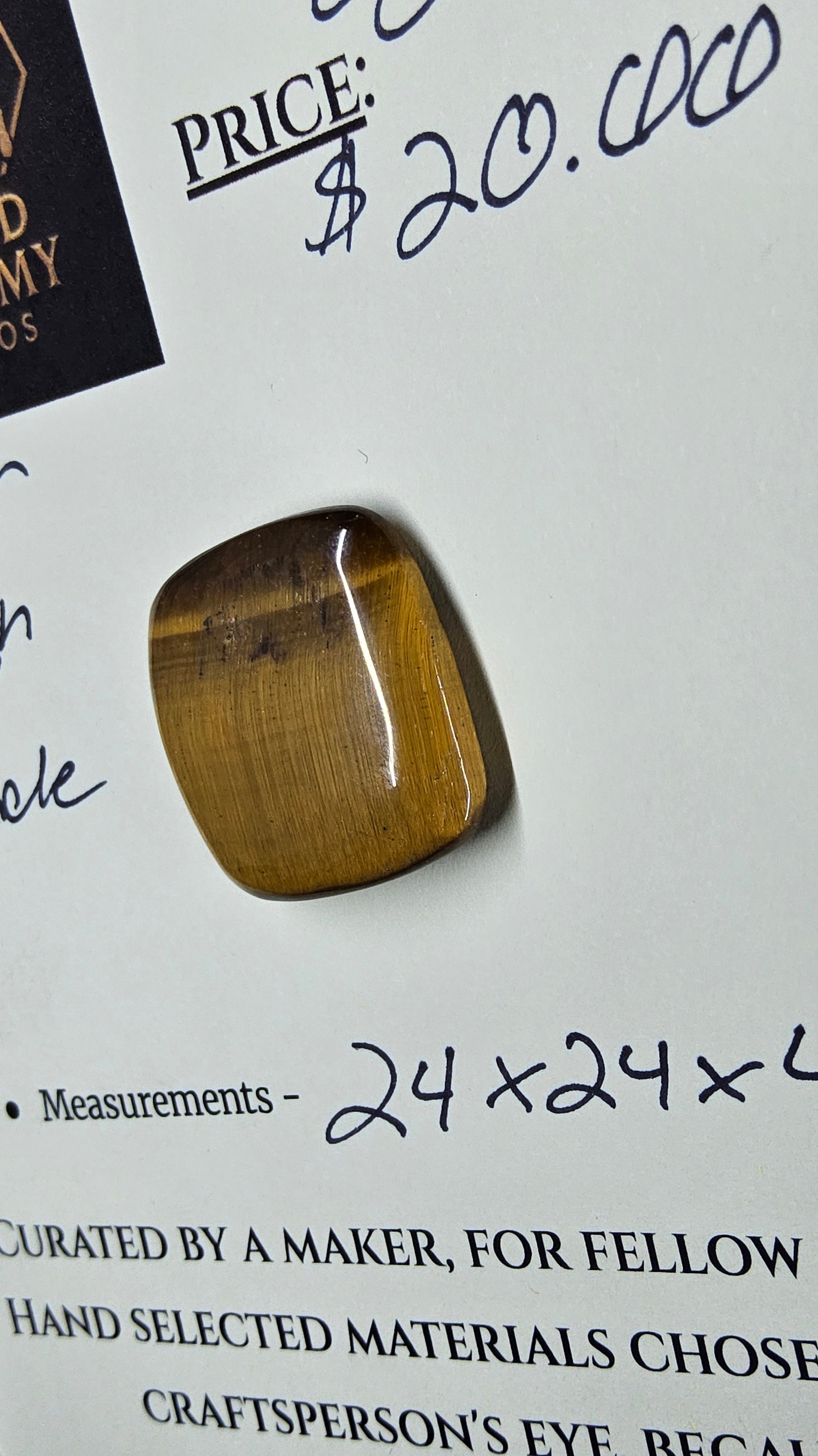 Bring a piece of the earth’s raw energy into your collection with this stunning Tiger’s Eye Cabochon. Known for its captivating chatoyancy, this stone displays a silky luster that shifts and glows as it catches the light, mimicking the watchful eye of a tiger.
