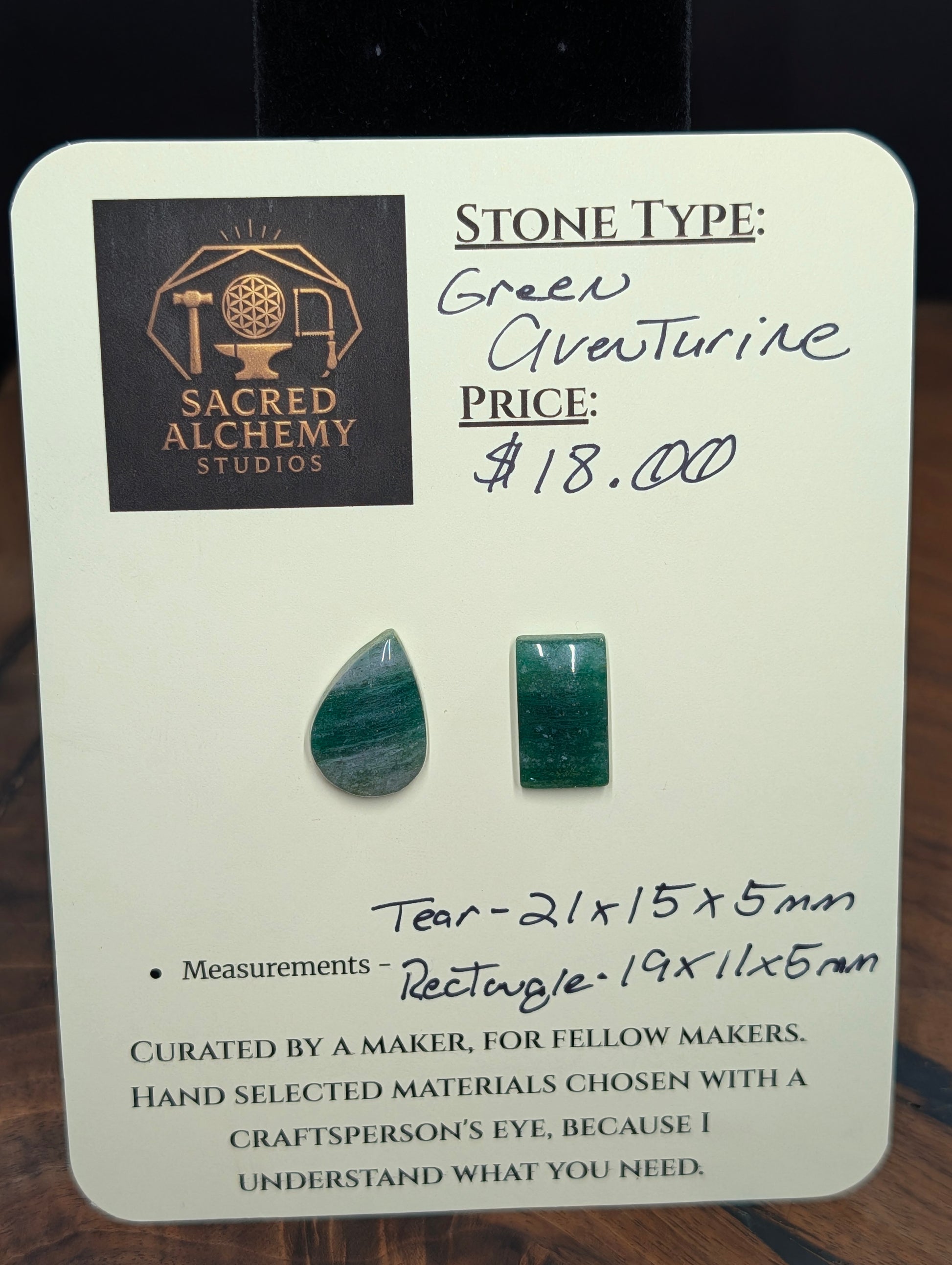 This listing is for a matched pair of natural green aventurine cabochons sourced from Karnataka, India and hand shaped and polished into smooth, ready to use stones for jewelry and crystal work. You will receive the exact two cabochons shown as a coordinated set.