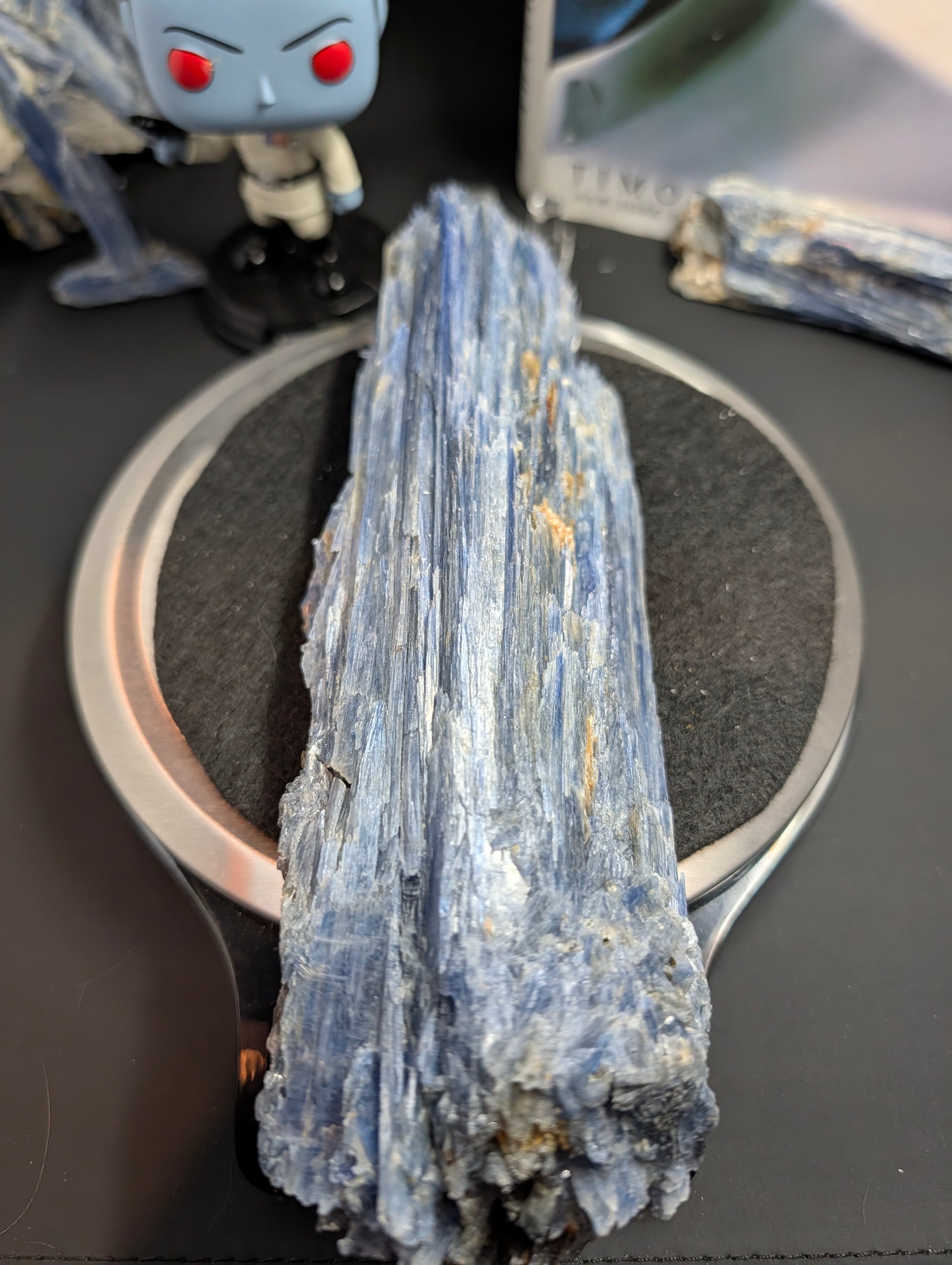 This stunning 913-gram kyanite specimen hails from the renowned mineral-rich region of Minas Gerais, Brazil. It's a true showpiece that stands out with its striking blue blades and natural elegance. Ideal for altar displays, home décor, or as a statement piece in any mineral collection, this rock star specimen truly shines.