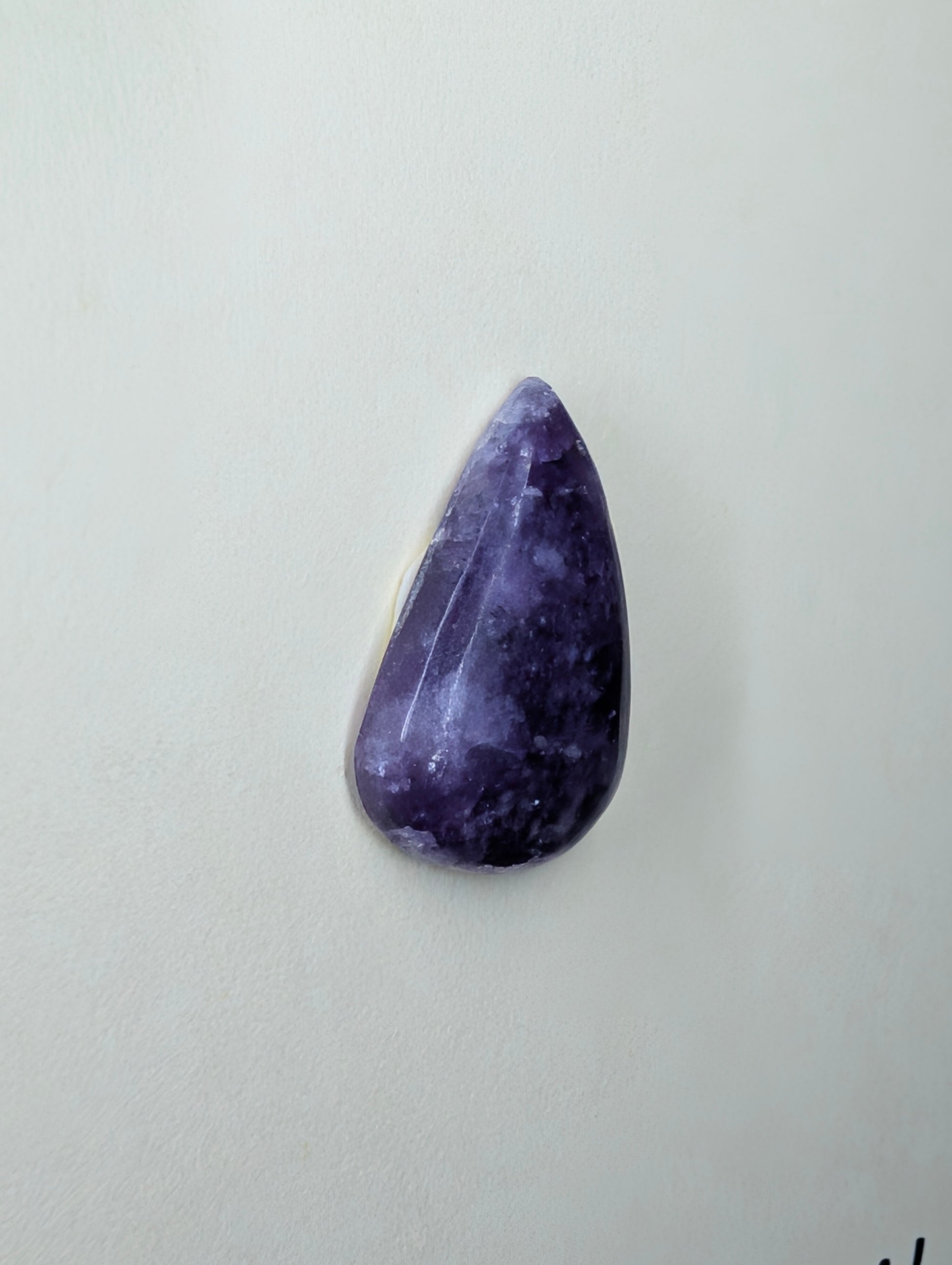This lepidolite cabochon is one I personally shaped and polished from a piece of raw lepidolite I sourced directly from India. It features the stone's natural soft purple hues and a calming energy that lepidolite is known for. Each cabochon is unique, and I ensure that every piece is finished to highlight the stone’s natural beauty.