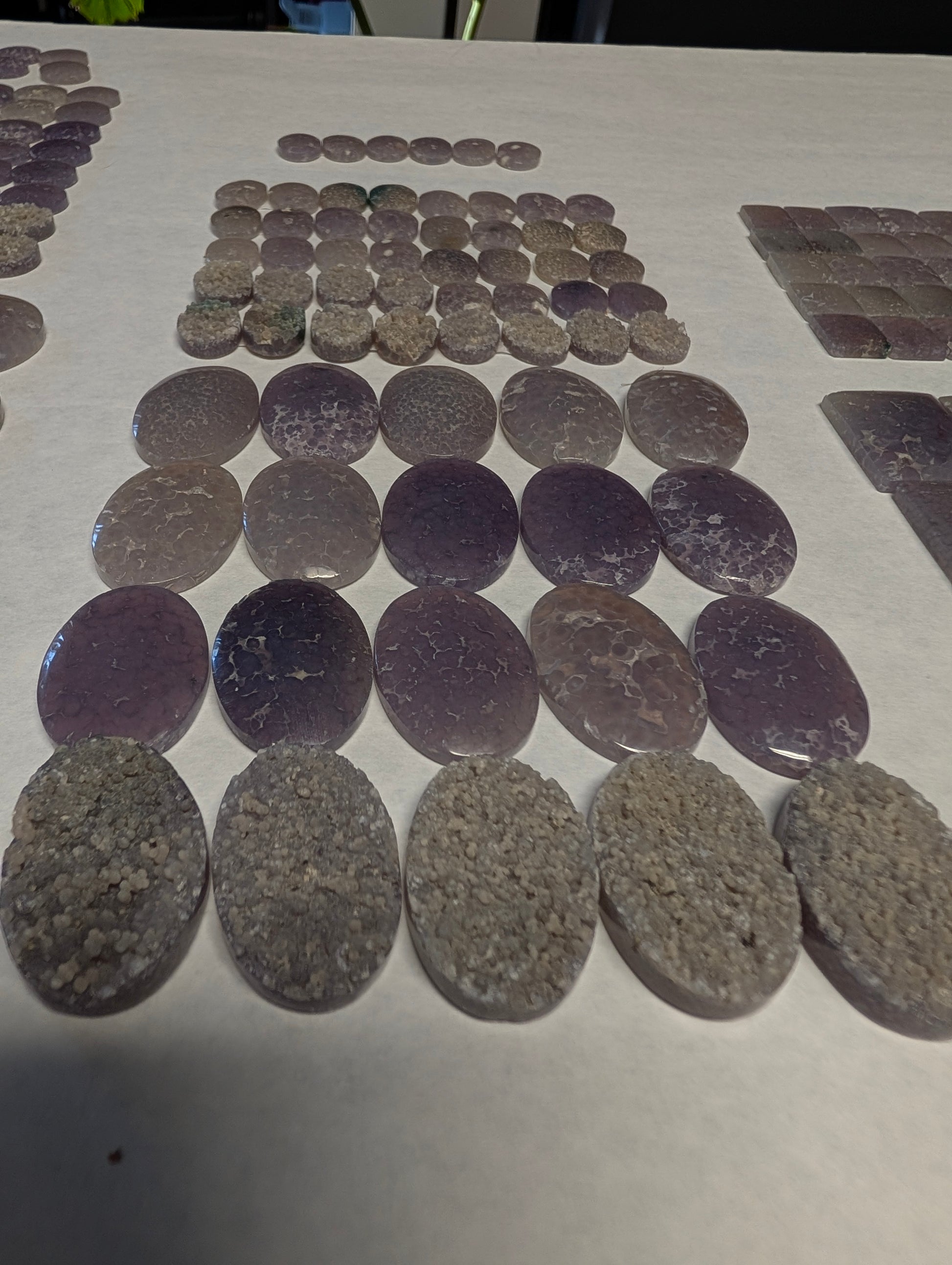 This exquisite cabochon set features high-quality Grape Agate, precision-cut into classic, elegant Oval shapes. Known for it's striking Purple shades, each stone is selected for its distinct patterns and superior polish.