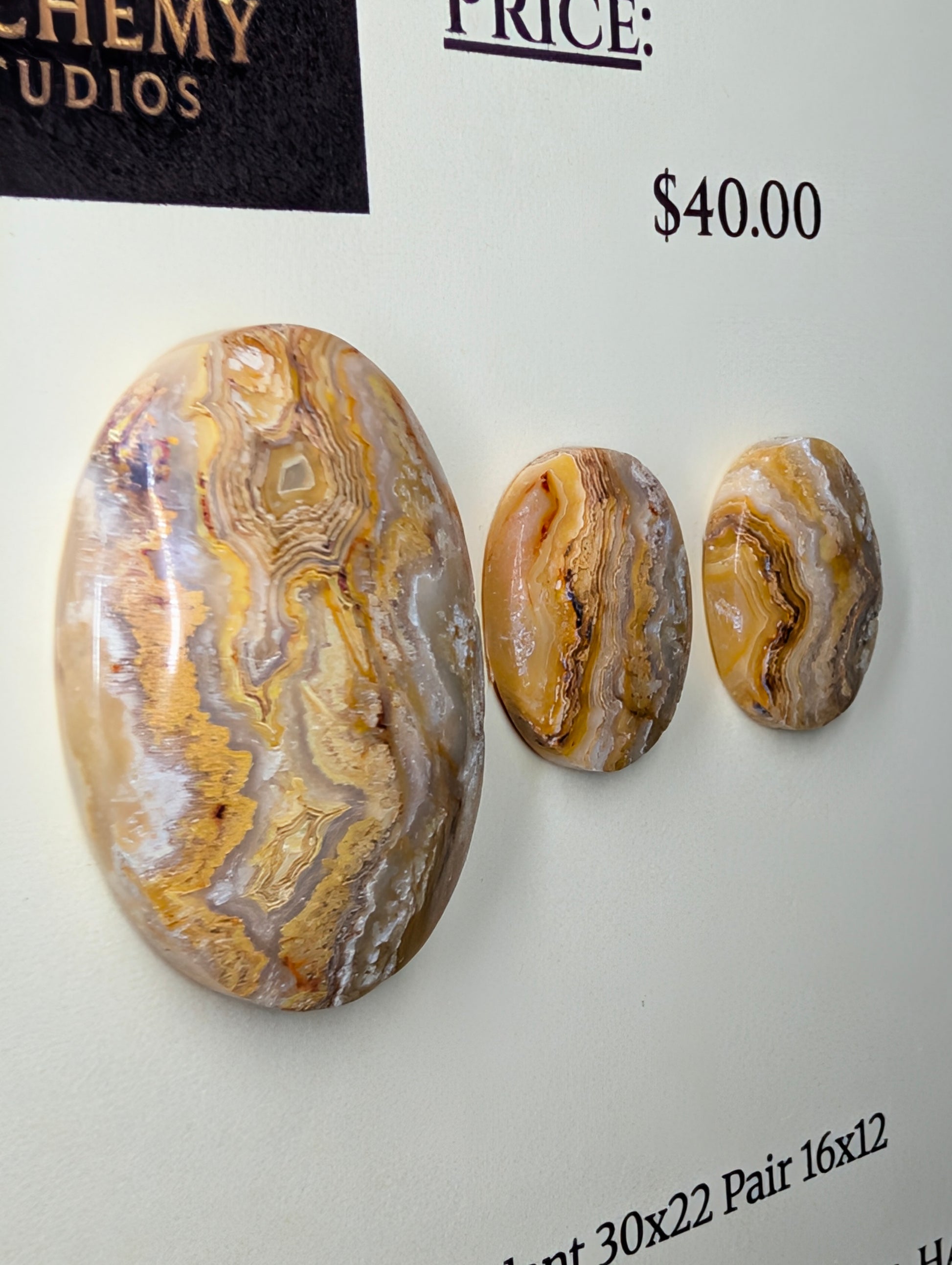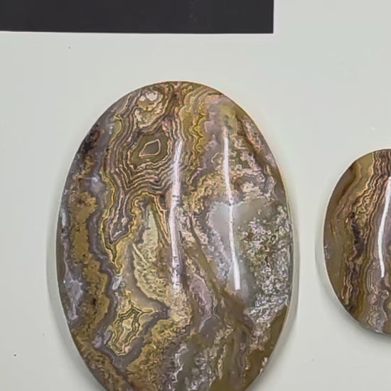This exquisite cabochon set features high-quality Lace Agate, precision-cut into classic, elegant Oval shapes. Known for it's striking cream bands, each stone is selected for its distinct patterns and superior polish.