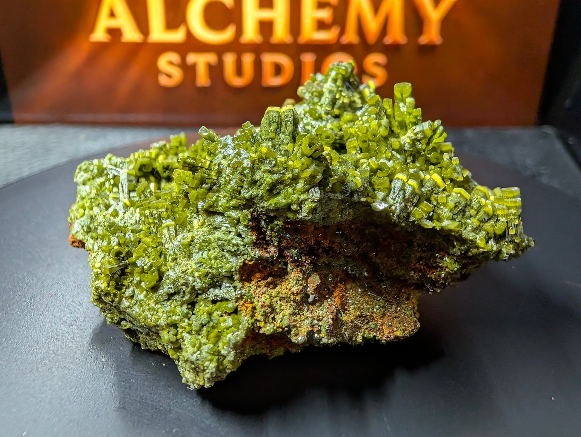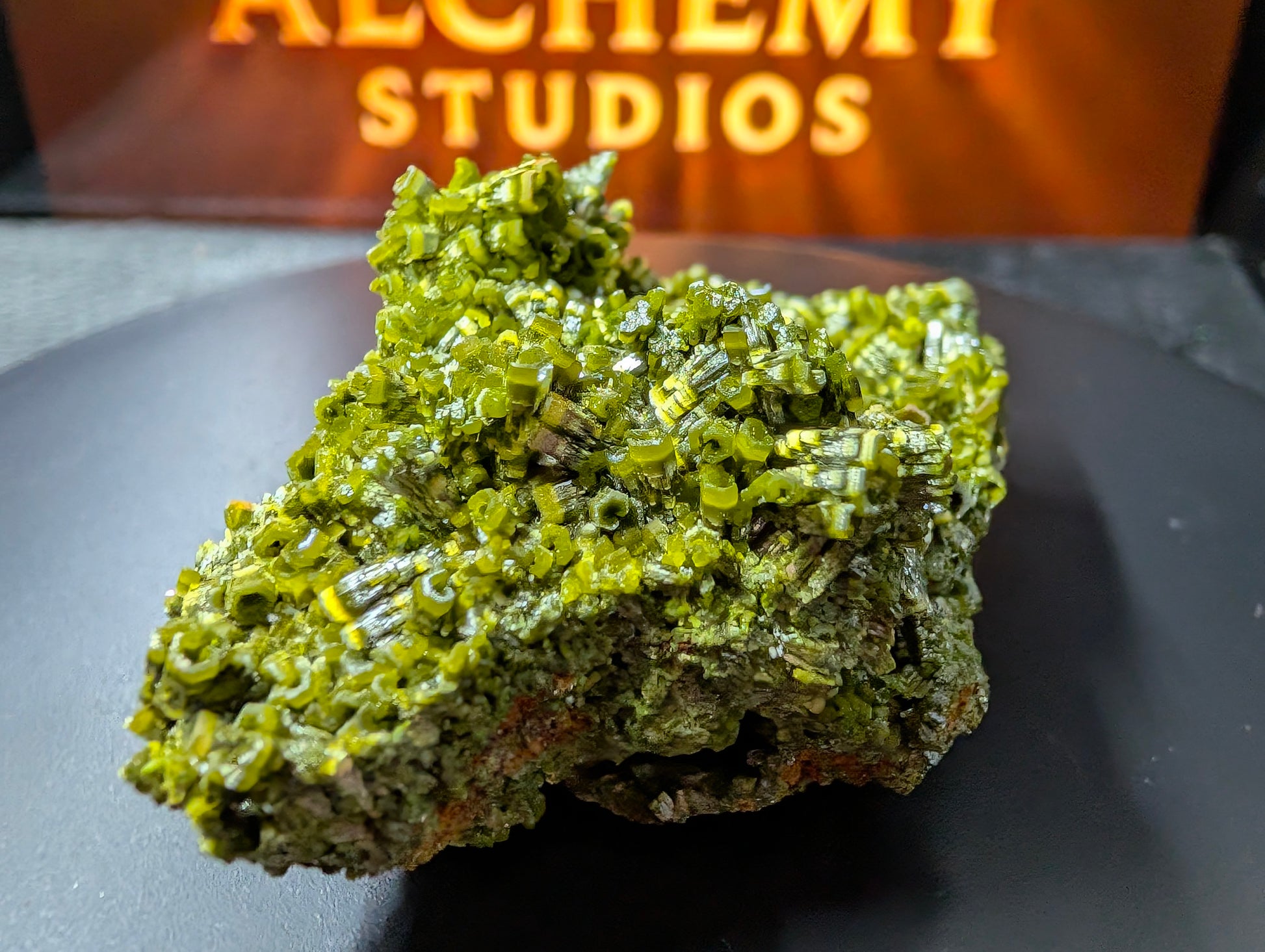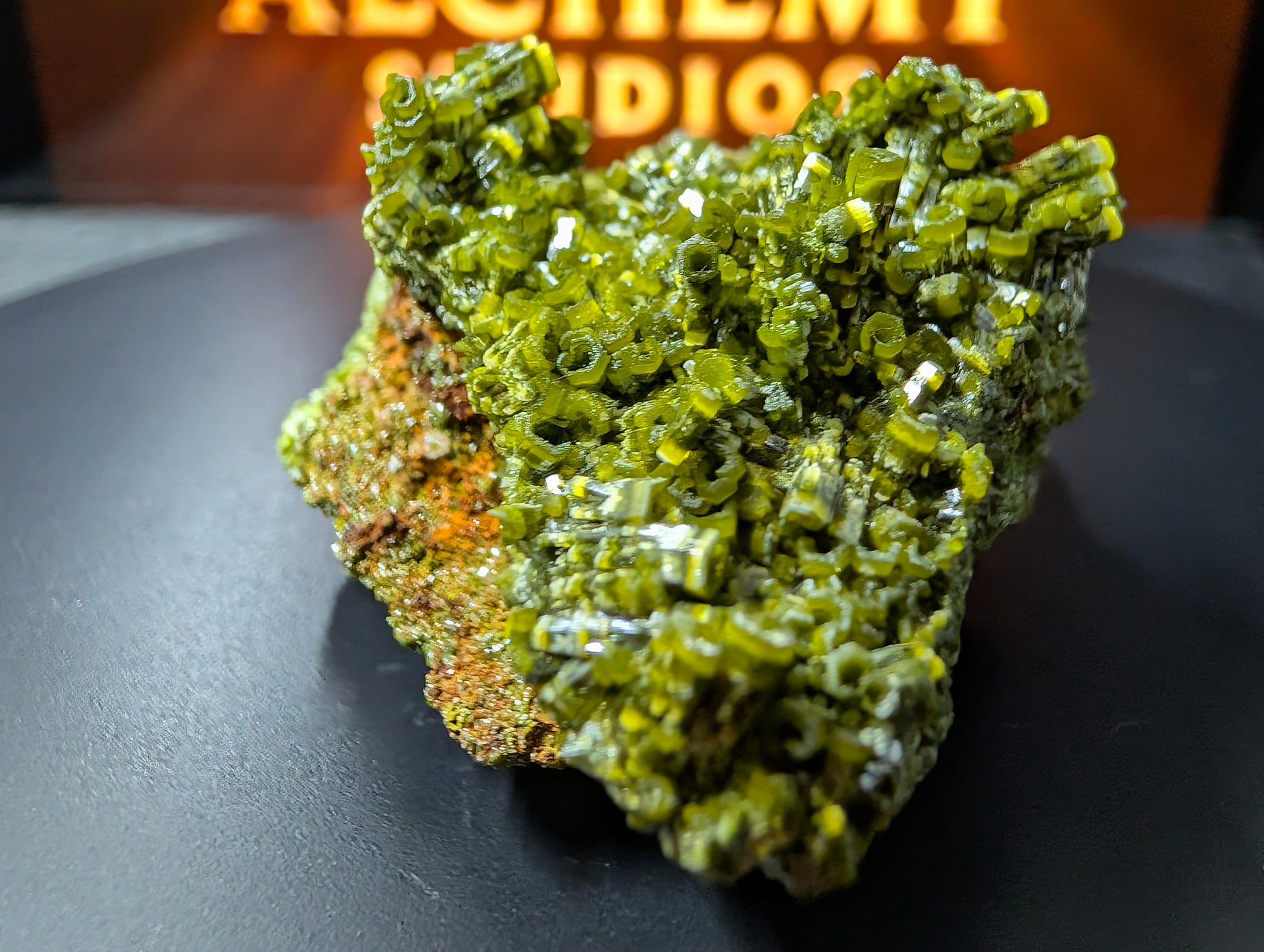 This specimen is a standout from the newer production. It features bold, three-dimensional, hoppered barrel crystals forming a beautiful cluster. The color is the coveted grass- to yellow-green “matcha” tone collectors chase, with strong, glassy luster that pops from every angle.