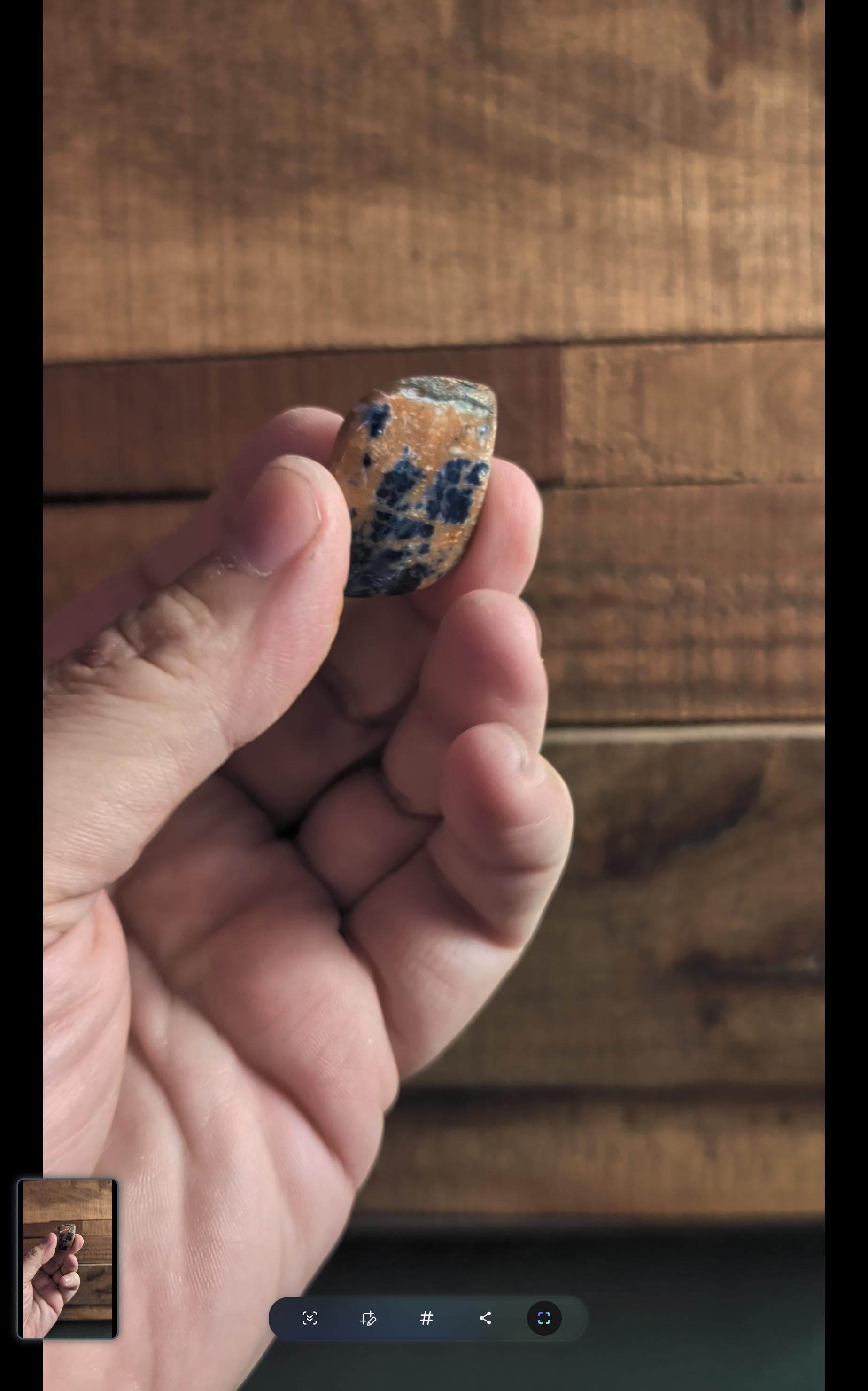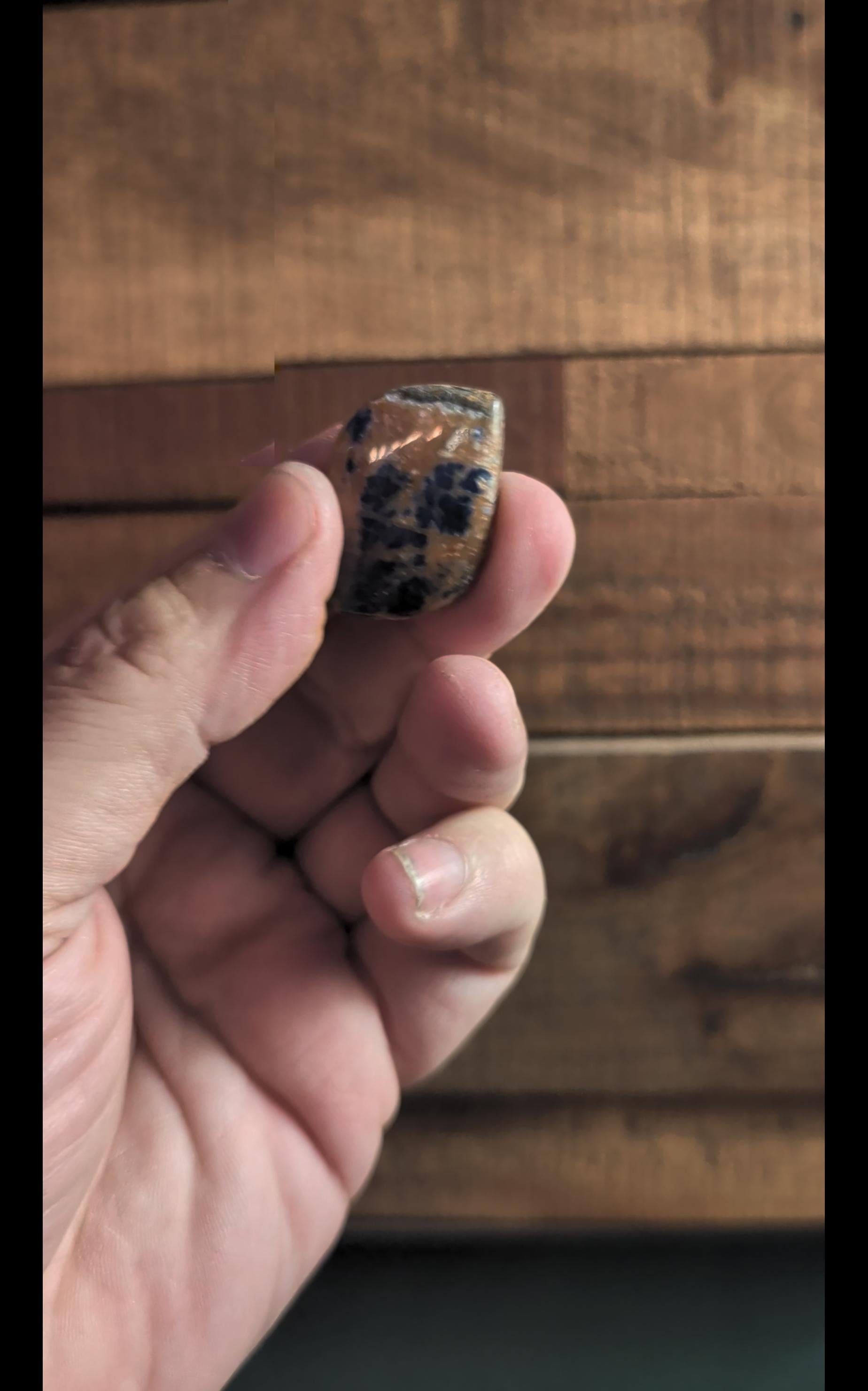 This striking Namibian Sunset Sodalite presents a harmonious blend of peachy-white matrix threading through a deep blue stone body, with no two pieces identical.