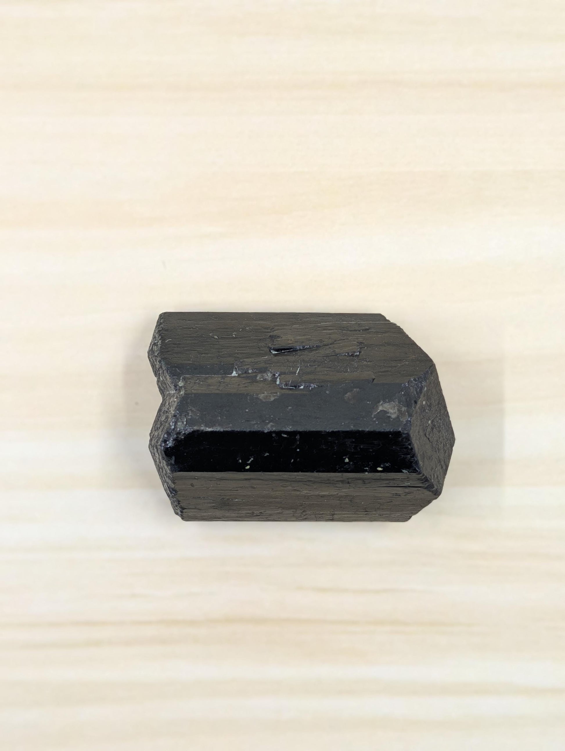 This piece is a natural Black Tourmaline crystal with strong vertical striations, sharp edges, and a deep black luster. It’s unpolished and stands on its own, perfect for display or meditation spaces.