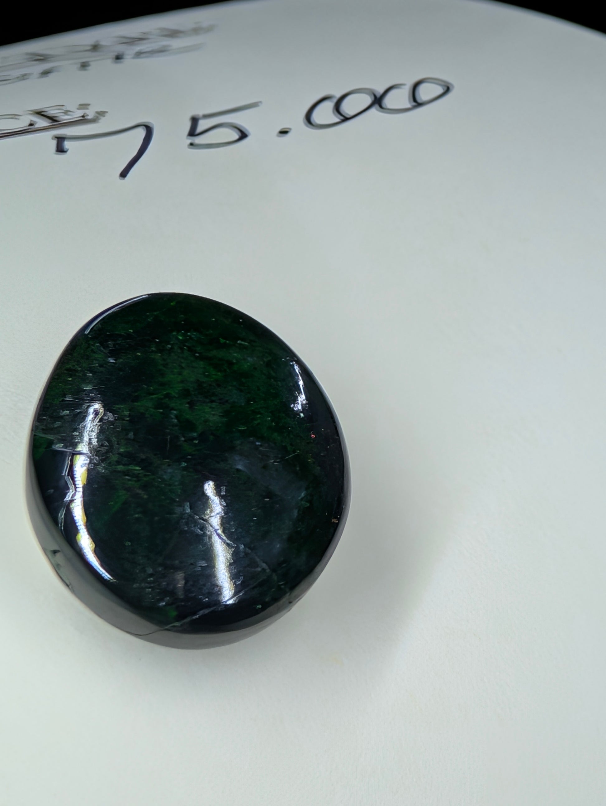 The Specimen This 3-gram Tsavorite cabochon is a stunning example of one of the world's rarest garnets. Sourced from the bushland border of Kenya and Tanzania, this specimen glows with a vivid, "chrome" green that rivals the finest Emeralds. Unlike Emeralds, Tsavorite is naturally durable and lacks the heavy treatments common in other green stones. This oval cut has been shaped to maximize color density, offering a lush, forest-green saturation that remains bright even in low-light environments. - Rare 3-gram weight for this specific mineral variety - Naturally high refractive index for superior brilliance and glow - Smooth, elongated oval dome perfect for high-end jewelry settings - Exceptional clarity for a garnet of this size and species